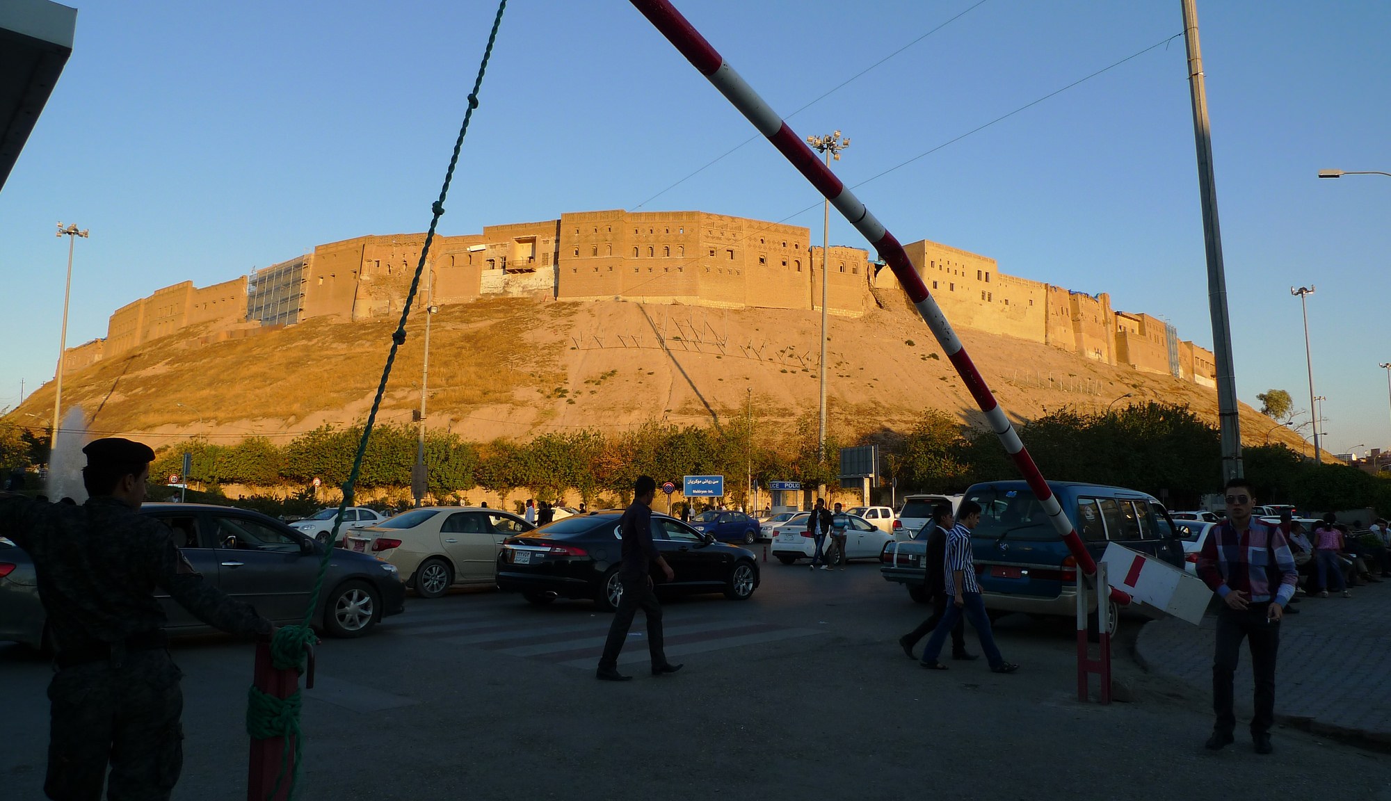 Die Hauptstadt Kurdistans, Erbil (auf Kurdisch Hewlêr) hat über eine Million Einwohner und gilt als eher konservativ. Wir hatten nicht diesen Eindruck, wir sahen sogar Jugendliche mit kurzen Hosen. Das Zentrum vom Erbil bildet eine Zitadelle, die angeblich schon seit Jahrtausenden ununterbrochen bewohnt wird. Diesbezüglich muss der aktuelle Zeitpunkt ein Tiefpunkt sein, die Lehmgebäude auf der Zitadelle sind alle verlassen bzw. werden gerade rekonstruiert. Nur eine Moschee und ein Souvenirgeschäft sind geöffnet. Vor dem Tor zur Zitadelle befindet sich ein neu gestalteter Platz mit Brunnen, Arkaden und vielen Läden, auf dem die Einheimischen bis spät in die Nacht bei Tee und Wasserpfeife herumsitzen. Wir taten ihnen gleich, als einzige Touristen weit und breit. Im Vorort Ainkawa leben die christlichen Minderheiten. Hier gibt es zahlreiche Restaurants, Bars und Alkoholgeschäfte.