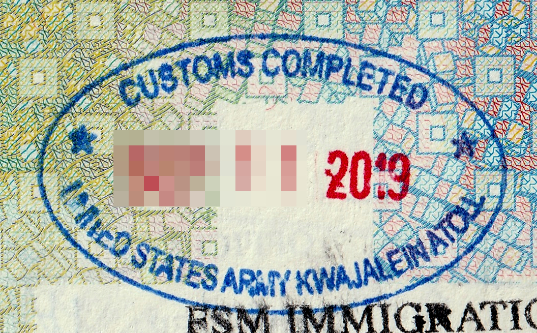 Passport stamps of the Marshall Islands (left) and the U.S. Army (right)