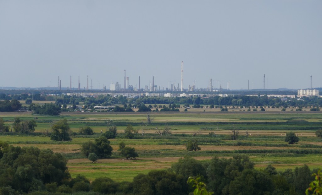 Die Raffinerie in Schwedt war enttäuschend. Ich hatte sie erstmals aus einem Flugzeug gesehen, vor der Landung in Berlin. Beeindruckend: Das Werksareal ist deutlich grösser als die Stadt an sich. Vor Ort sieht man davon leider nicht viel. Die PCK-Raffinerie ist weiträumig abgesperrt, nur aus der angrenzenden Gewerbezone kann man hin und wieder einen Blick darauf erheischen.
