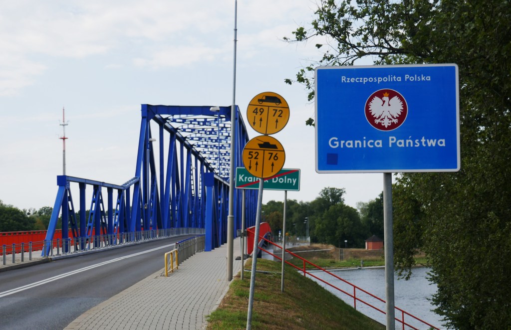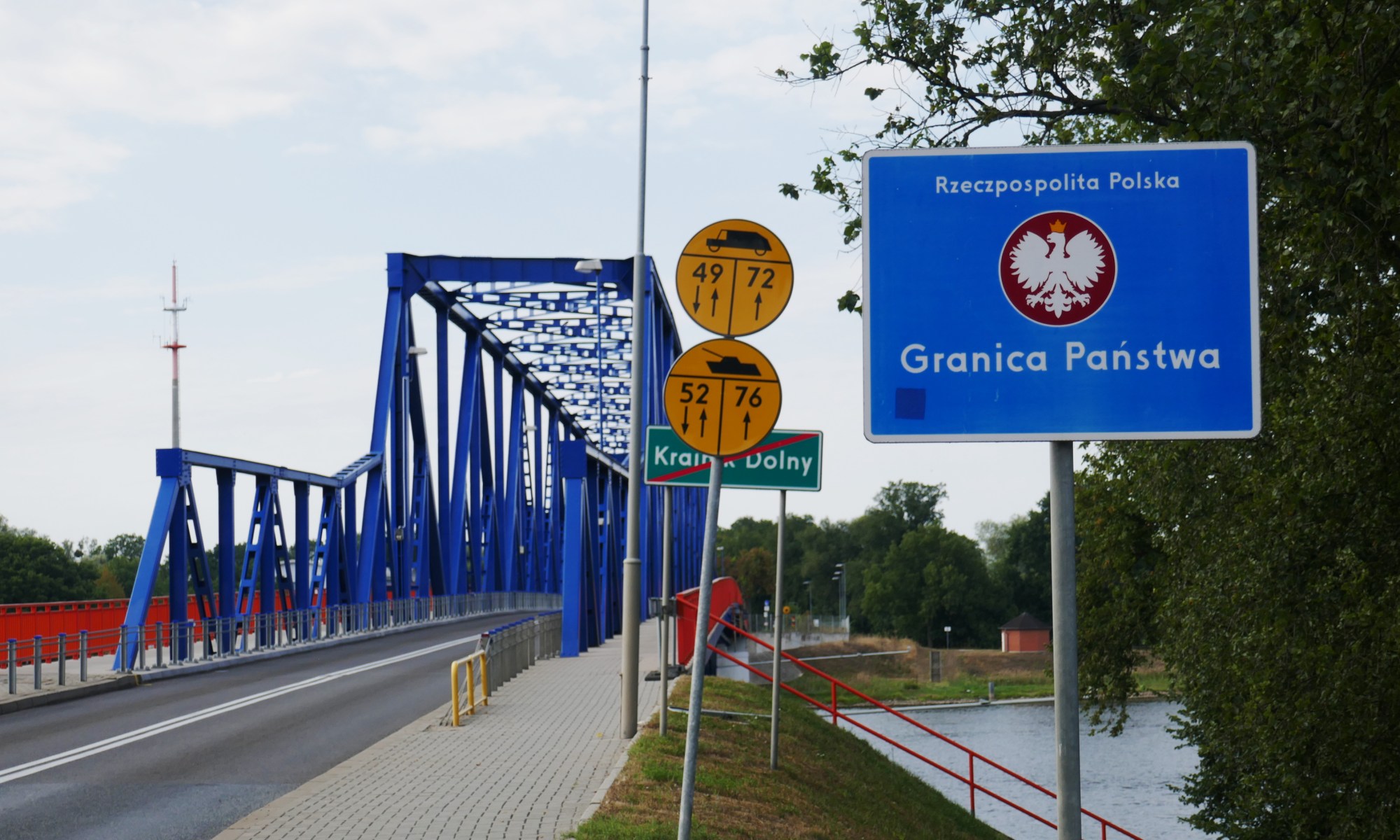 An der deutsch-polnischen Grenze ist kaum vorstellbar, dass hier vor wenigen Monaten noch strenge Kontrollen stattfanden. Das Zollgebäude aus der Vor-Schengen-Zeit zerfällt langsam, die Vegetation erobert sich den Vorplatz zurück. In einer Ecke hängt der Rest eines Spruchbands, der wohl die Wiedereröffnung der Grenze nach den Corona-Schutzmassnahmen forderte. Der Verkehr rollt ungehindert über die Brücke. Auf der polnischen Seite ist ein Streifenwagen der Zollbehörde abgestellt, aber bei näherer Betrachtung sehe ich, dass er leer ist. Attrappe.