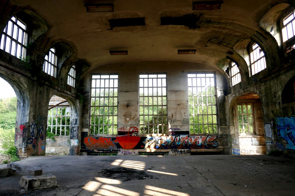 Wirklich toll war mein zweites Rohrwerk des Tages in der Nähe des Dorfs Muldenstein. Auch hier findet man nur noch unvollständige Ruinen vor. Der Ort diente einst als Partylocation – das muss einige Zeit her sein, doch einige Scheinwerfer an den Decken der hohen Sääle zeugen auch heute noch davon.