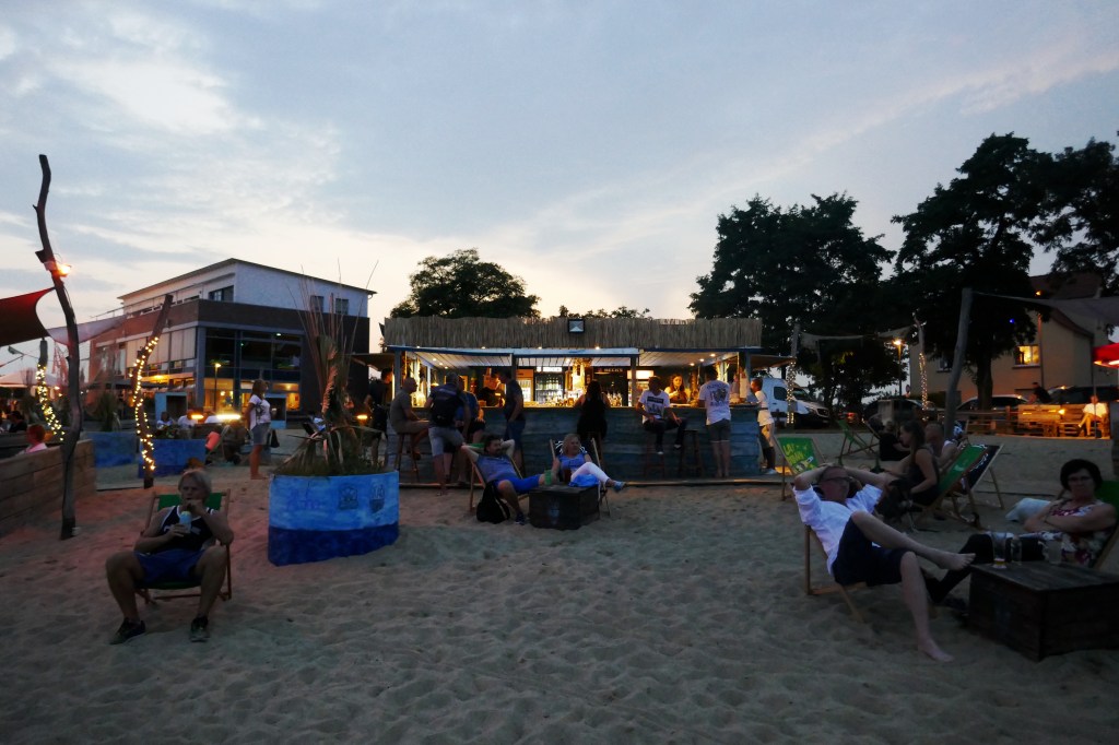 Heute spielt sich die Party am Ufer des Goitzsche-Sees ab. Während meines Besuchs fand gerade ein Openair-Konzert mit deutschen Metal- und Rockbands statt – wohl das erste seit Beginn der Corona-Pandemie, das Publikum war ordentlich in sehr kleine Sektoren mit Abschrankungen eingeteilt, so dass sich niemand zu nahe kam. Ich bevorzugte die gemütlichere Strandbar BAARI gleich nebenan. Wirklich eine schöne Ecke – meilenweit entfernt von der trostlosen Stimmung der Altstadt!