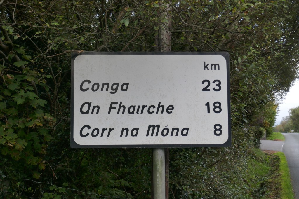 Sprache: Der Western Way und viele andere Wanderwege im Westen Irlands führen durch die Gaeltacht. So heissen die Gebiete, in denen nur das Irische Amtssprache ist. Alle offiziellen Beschriftungen in diesen Gebieten sind nur auf Irisch, das auch Sprache der Behörden und Schulen ist. Tatsächlich ist die Bevölkerung aber zweisprachig, man kann sich problemlos auf Englisch verständigen. Nur die Ortsnamen sollte man auf Irisch kennen, da eine englische Beschilderung fehlt – also beispielsweise Gob an Choire anstatt Achill Sound.