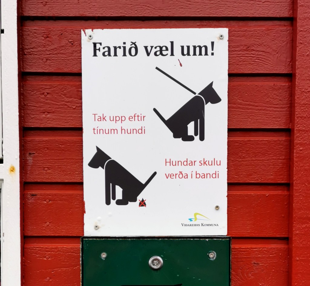 Färöisch ist gleich wie das Deutsche eine germanische Sprache und entsprechend hatte ich Mühe, mich damit abzufinden, dass ich sie nicht verstehe. Denn in geschriebener Form sieht sie toll aus, voller -ur-Endungen und Buchstaben wie ð und ø, die darauf hindeuten, dass sie noch recht nahe der ursprünglichen Wikinger-Sprache ist. Dies ist tatsächlich so, die nächsten Verwandten sind das Isländische und westnorwegische Dialekte aus der Gegend von Bergen, von wo aus die Färinger vor etwa 1000 Jahren ausgewandert waren. Zwischendurch war das Färöische aber mal fast ausgestorben, und auf die Aussprache wirkte sich das Dänische der Kolonialzeit offenbar übermässig aus – zumindest hört es sich so an. Das tolle ð wird nicht mal ausgesprochen und soll ein Schreck für färöische Schulkinder sein. Für mich war ein Schreck, dass allein die Ausspracheregeln im Kauderwelsch elf Seiten einnahmen, so dass ich gar nicht weitergelesen habe. Jedenfalls kann sowieso jeder fliessend Englisch und offenbar auch Dänisch. Letzteres ist aber primär im Fernsehen präsent, ansonsten ist es aus der Öffentlichkeit fast vollständig verschwunden.