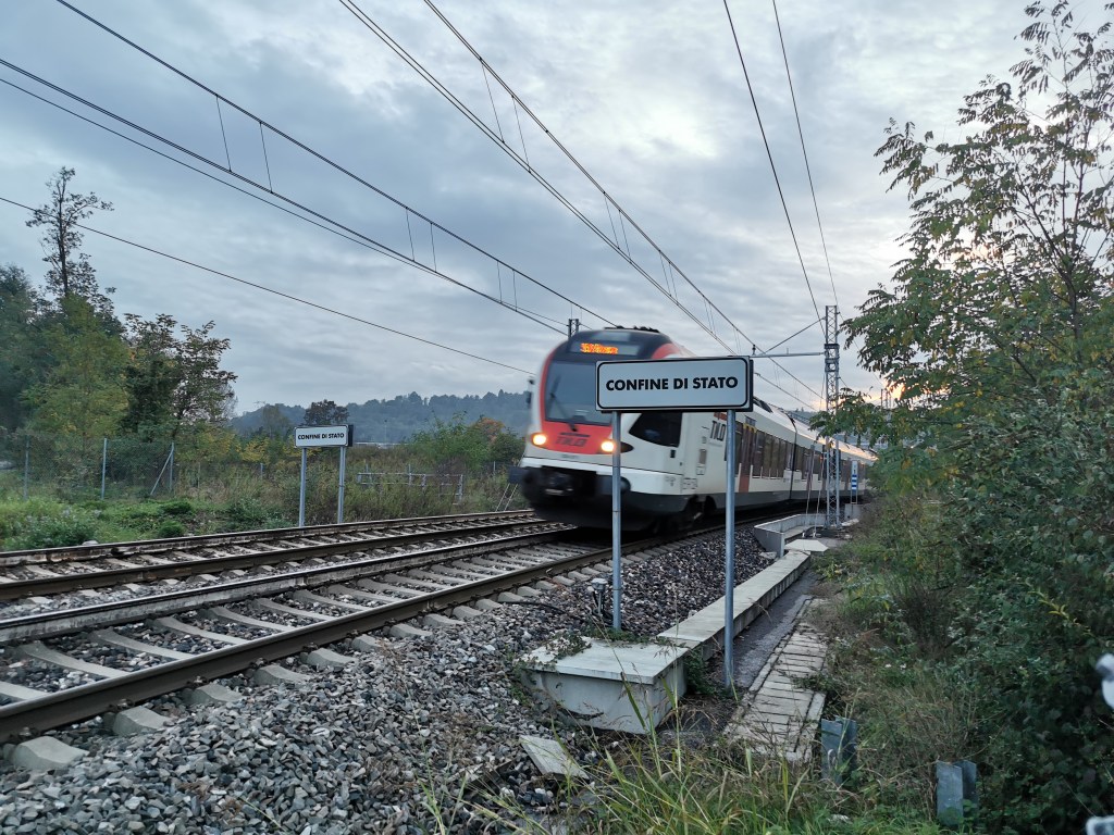 Direkt am Grenzübergang bespasst ein Alleinunterhalter in der Gelateria «Dolce Vita» unter dem Ein-Stern-Hotel «Dogana» eine Gruppe Senioren, der Lärm schallt über den Platz vor dem architektonisch ansprechenden Grenzübergang. An den Grenzübergang schliessen sich mehrere Italien-typische Bars an, auch sie alle gut besucht. Das futuristische Gebäude der «Bar Principe» könnte vom Stil her – inklusive Bar – genauso gut in der eritreischen Hauptstadt Asmara stehen. Die Schweizer hingegen zieht es in die Sushi-Meile gleich dahinter – an jedem Grenzübergang der Region stösst man auf Sushi-Restaurants! Ich hingegen bevorzuge die «Piadineria Caveja», wo neben mir drei SBB-Angestellte einkehren und darüber diskutieren, auf welchen Zug sie müssen: Der Bahnhof Chiasso ist nur 150 Meter entfernt.