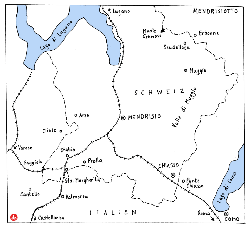 Der südlichste Abschnitt der Grenze zwischen dem Tessin und der Lombardei scheint komplett unnatürlich. Er folgt weder Flussläufen, Wasserscheiden noch Gebirgszügen, und noch viel weniger sprachlichen oder kulturellen Trennlinien. Das Mendrisiotto ist nur über den Seedamm Melide-Bissone mit dem Rest der Schweiz verbunden und wäre bei einem Angriff Italiens militärisch nicht zu halten. Dennoch ist dieser Grenzverlauf seit mehr als 500 Jahren unverändert – und völlig friedlich. Ein paar Geschichten aus dieser faszinierenden Grenzregion.