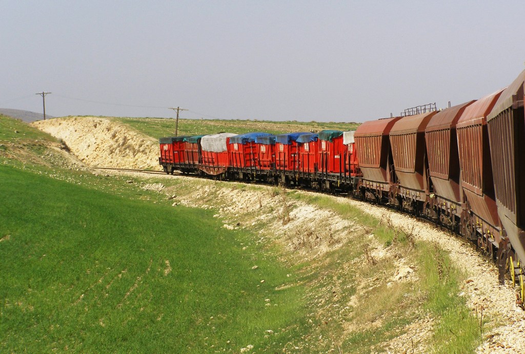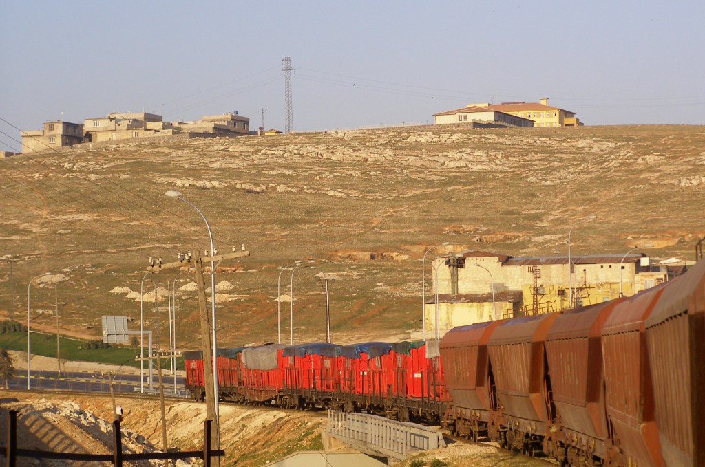 Die ersten 91 Kilometer meiner Fahrt führten durch das türkische Inland, von den Vororten Gazianteps durch trockenes Hügelland bis zum Grenzort Karkamış. Die Personenwagen waren fast leer und ich wunderte mich, wie die türkische Bahn den Betrieb dieser Strecke überhaupt bezahlen konnte: Für die 12-stündige Reise hatte ich gerade mal 5 Euro bezahlt. Wahrscheinlich wollte die Türkei aus geostrategischen Gründen den Betrieb dieser exponierten Linie nicht aufgeben.