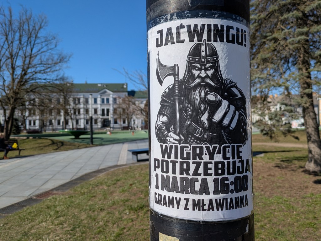 Die heidnischen Jatwinger haben hier überlebt, und zwar als Anhänger der lokalen Fussballmannschaft Wigry Suwałki. Da mir nach der kurzen Stadtbesichtigung immer noch zwei Stunden bis zur Abfahrt des Zuges nach Litauen blieben, investierte ich in einen Matcha Latte im White Bear Coffee, einer polnischen Kaffeekette mit ausgesprochen kitschigem Look und dazu passenden knallbunten Getränken.