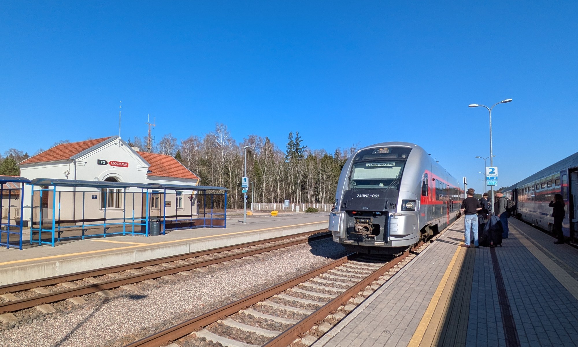 Heute muss man an dieser Grenze nicht mal eine Identitätskarte mehr vorzeigen, wenn es auch immer noch nur wenig Verkehr gibt: die meisten Waggons des Intercity Hańcza sind leer, nur etwa 40 oder 50 Personen machen an diesem Tag den Grenzübertritt mit dem Zug (weil die Flüge so billig sind). Sein Lauf endet am litauischen Grenzbahnhof Mockava, die Passagiere steigen hier in den litauischen Schnellzug nach Kaunas und Vilnius um. Denn Litauen fährt die Bahn immer noch auf der Breitspur, ein Erbe des paranoiden Sowjetregimes. Doch an der Kompatibilität wird gearbeitet: In ein paar Jahren soll eine Normalspur-Hochgeschwindigkeitsstrecke von Polen über Litauen und Lettland nach Estland in Betrieb gehen, die „Rail Baltica“. Das Projekt ist allerdings von Verspätungen geprägt. Immerhin ist es seit 2025 wieder möglich, in einem Tag mit dem Zug von Vilnius über Riga nach Tallinn zu reisen, mit zweimaligem Umsteigen allerdings (in Riga und Valka).
