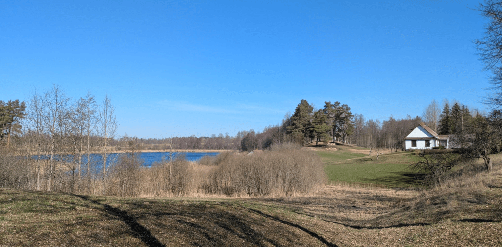 Zemgale, das erste lettische Dorf, wirkte ungemein beschaulich: eine fast schon skandinavisch wirkende Streusiedlung mit ein paar farbigen Holzhäuschen, manche davon schon arg in die Jahre gekommen und verlassen, andere sehr gepflegt. Am Strassenrand sass eine ältere Frau und grüsste mich. Und überall Ziehbrunnen: ist Zemgale noch gar nicht ans Wassernetz angeschlossen?