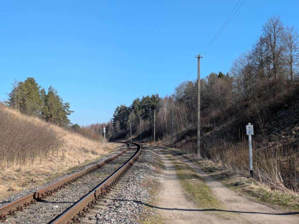 Die litauisch-lettische Grenze befindet sich nur 400 Meter vom Bahnhof entfernt. Eine Strasse gibt es hier nicht, nur einen Fusspfad und die Bahnlinie. Rund um diese herum hat die Grenze eine Ausbuchtung, durch welche das litauische Staatsgebiet rund 50 Meter ins lettische hineinragt. Mitten in dieser Ausbuchtung parkierte ein Auto mit litauischem Kennzeichen. In der Ausbuchtung gibt es einen Stromkasten, der offensichtlich litauischer Nationalität ist, und an dem werkelte der Fahrzeughalter in orangem Warngilet herum. Das nervte mich. Ich hatte mich so darauf gefreut, diese abgelegene Grenze für mich allein zu haben. Nun getraute ich mich kaum, zu fotografieren, die nahe belarussische Grenze (nur 10 Kilometer entfernt) weckte in mir die Furcht, wie schon so oft im ex-sowjetischen Raum der Spionage verdächtigt zu werden (besonders die Russen sind echt paranoid, wenn man Objekte fotografiert, die nicht eindeutig Sehenswürdigkeiten (oder Selfies) sind – und ich fotografiere eigentlich nichts anderes).
