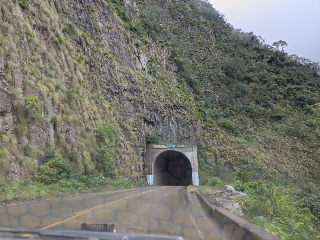 Die Busfahrt war nicht sehr angenehm. Sie führte zwar weiterhin dem Grenzfluss entlang, doch davon konnte ich nichts erkennen, da die Fenster beschlugen und sowieso alle Vorhänge gezogen waren (Südamerikaner machen das ständig, wieso??). Unterwegs fuhren wir eine längere Strecke sehr langsam, am Strassenrand gab es einen Markt. Mitten im Nichts! Wie sich herausstellte, gab es hier nochmals eine Zollstelle. Für den Bus interessierten sich die Zöllner aber nicht.