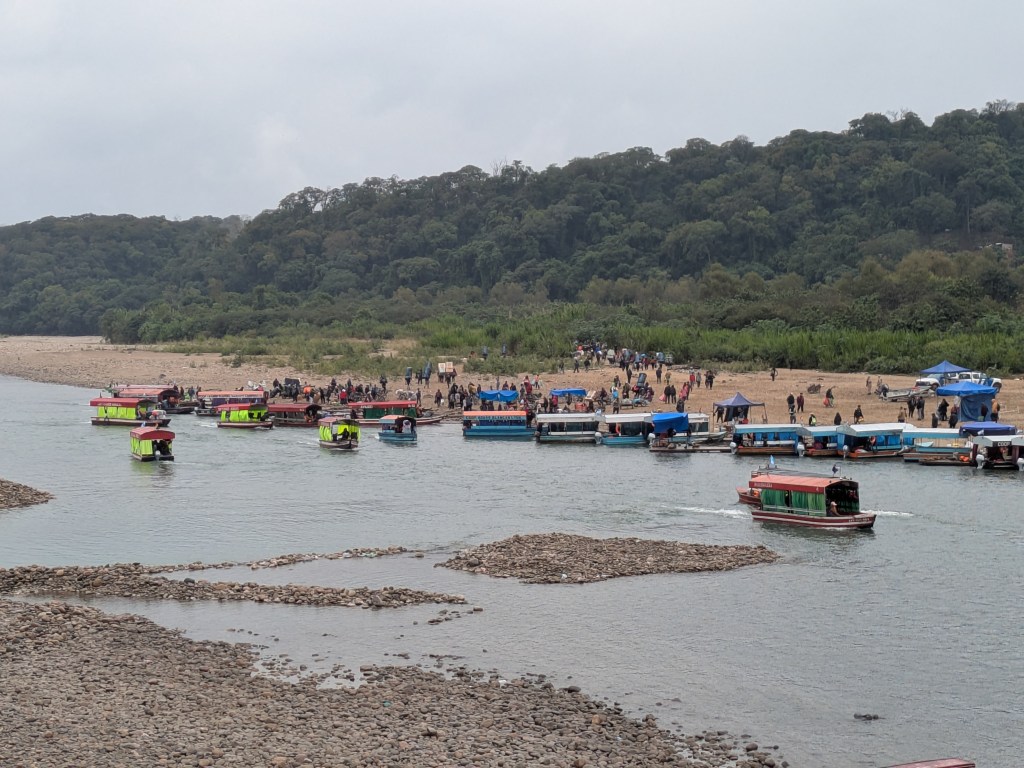 Das coolste an Bermejo sind aber die Chalanas: Kleine Boote, mit denen man in wenigen Minuten nach Argentinien übersetzt. Da so viele Leute unterwegs sind, beträgt die Wartezeit zur Abfahrt kaum eine Minute. Die Bootsfahrer sind in Kooperativen organisiert, die jeweils eigene Abfahrtspunkte an den beiden Flussstränden haben. Die Überfahrt kostet bei allen entweder 5 Bolivianos oder 1000 argentische Pesos, was deutlich teurer ist (ca. 13.4 Bolivianos). Ich hätte aus dem Trufi direkt in eine Chalana hüpfen können. Aber ich sah keine Möglichkeit, den Pass kontrollieren zu lassen! In drei Kilometern Entfernung gibt es eine Grenzbrücke mit Kontrollstelle – musste ich extra dorthin fahren? Am Flussufer standen zwei Soldaten der bolivianischen Armee und beobachteten das Treiben. Ich fragte sie, aber sie wussten es nicht. Sie waren noch nie in Argentinien gewesen. Bei den Chalana-Büros hingegen war man überzeugt: Die Grenzkontrollen fänden auf der argentinischen Seite statt.