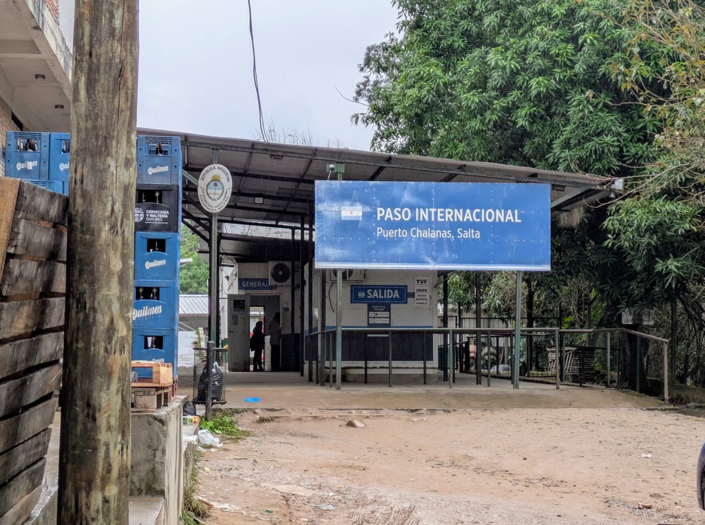 Das war gar nicht so einfach. Ich setzte darauf, dass mich die Menschenmenge schon ans richtige Ort führen würde, und folgte ihr auf einem sandigen Streifen ins Schilf hinein. Das fühlte sich schon etwas ungewöhnlich an, bei einem internationalen Grenzübergang. Am Rand standen Träger mit Metallwagen und es gab weitere bolivianische Marktstände. Und dann… stand ich plötzlich in der argentischen Grenzstadt Aguas Blancas auf der Strasse. Keine Kontrollen weit und breit.