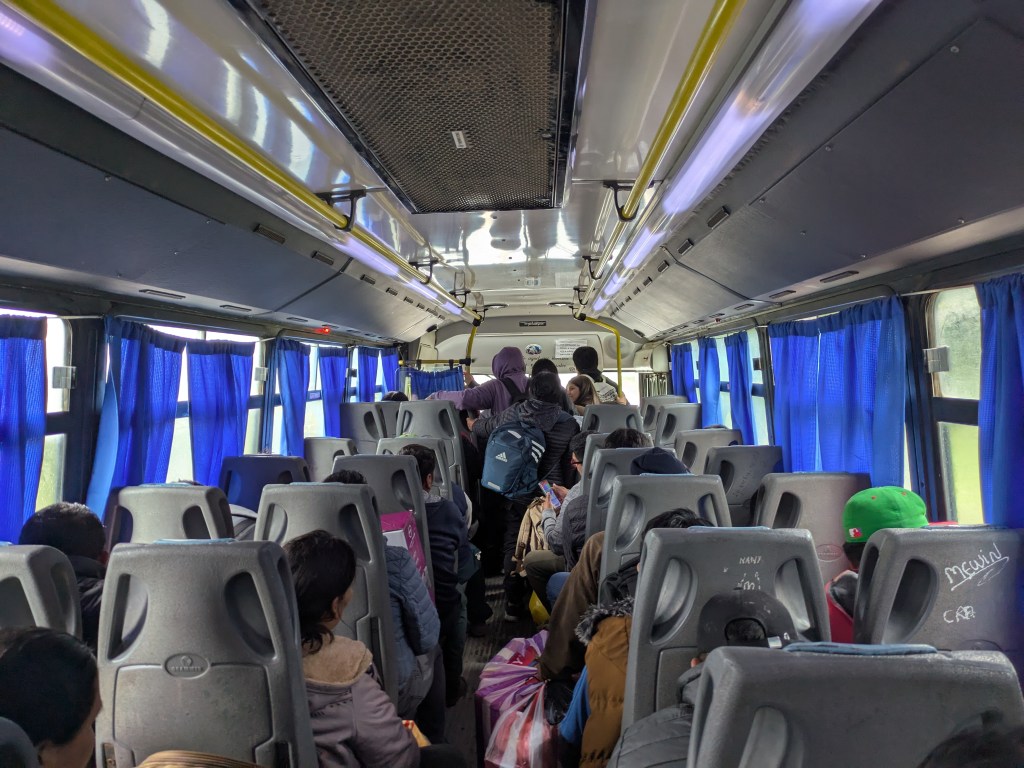 Der Regen nahm zu und Aguas Blancas machte einen wenig faszinierenden Eindruck. Bolivianer kaufen hier offenbar vor allem Fleisch ein, es gibt ein paar Metzgereien im Ortszentrum. Ausserdem ein Gewühl von Autos und einzelnen Bussen, denn gleich wie für mich begann auch für die meisten Chalana-Passagiere hier die 3. Etappe: Mit dem Bus in die nächste grössere Stadt mit dem langen Namen San Ramón de la Nueva Orán, genannt Orán wie die Stadt in Algerien. Sofort füllte sich der zerschlissene Bus mit Grenzgängern. Erstaunt war ich über den hohen Preis für die kurze Strecke (45 km): 5000 Pesos, also ca. 3.50 Fr. In Bolivien hatte ich für die 200 km Trufi-Fahrt nur 50 Bolivianos (ca. 2.50 Fr.) bezahlt.