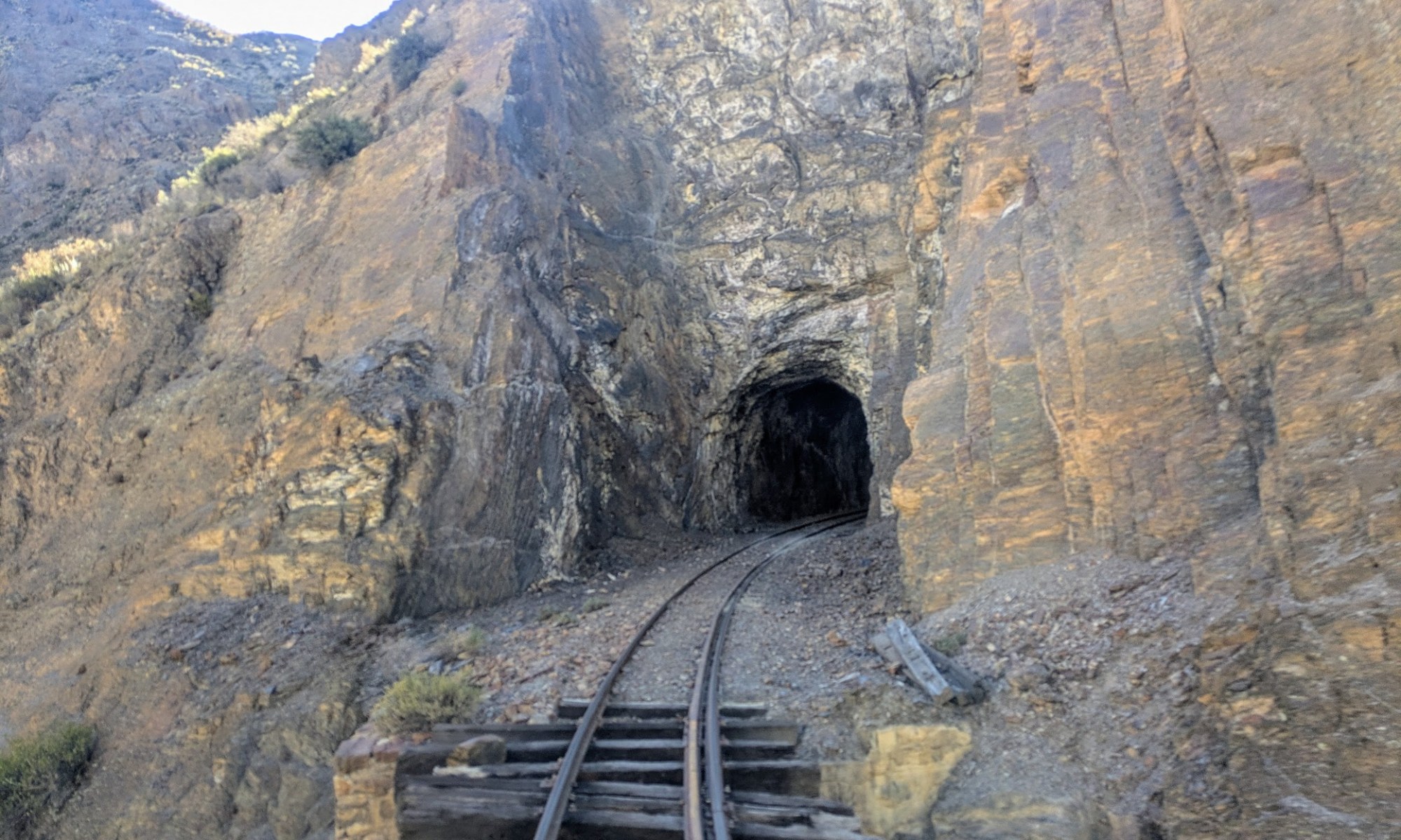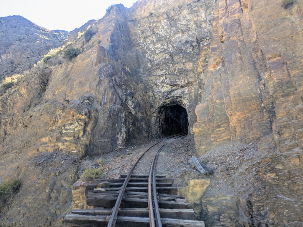 Plötzlich ging die Hochebene in eine schroffe Schlucht über. Über einen exponierten, in die Bergwand gehauenen Schienenpfad holperte der Ferrobus über dem Abgrund und schraubte sich immer weiter in die „Tiefe“ (die hier immer noch weit über 3000 Meter über Meer liegt). Es gibt auch einige finstere Tunnels, der Ferrobus scheint keine Innenbeleuchtung zu kennen.
