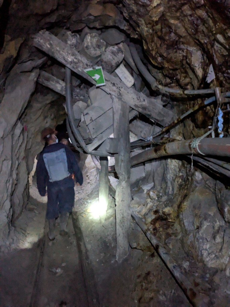 Einstürze hingegen sind selten und auch meist nicht lebensbedrohlich, ausser man wird direkt vom Fels getroffen. Die meisten Gänge haben mehrere Ausgänge, teils auch zu den Eingängen anderer Kooperativen. Es gehört sich aber nicht, diese zu benützen – ausser im Notfall. Auch die Orientierung ist nicht allzu schwierig, da man anhand der Weichen meist erkennen kann, in welche Richtung es nach draussen geht – zumindest im „Parterre“, wo wir uns bewegten – es geht ja auch noch mehrer hundert Meter hinauf und hinunter, wohin man Touristen nicht bringt. Um Einstürze zu vermeiden, werden stabile Gesteinsschichten an strategischen Orten belassen, anstatt ihr wertvolles Erz abzubauen.