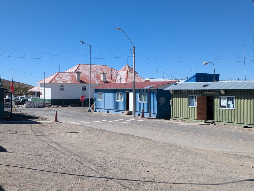 Es ist kurz nach elf Uhr, als ich mich auf das Gelände begebe. In einem Western würde nun der Wind Tumbleweed über die Strasse blasen. Eine nach dem anderen klappere ich die Baracken ab, in denen sich die verschiedenen Kontrollinstanzen befinden. Erst nach ausgiebigem Klopfen, zum Poltern gesteigert, öffnet mir der chilenische Passkontrolleur. Oder vielmehr: schlurft aus dem Schatten hinter den Baracken herbei. Bei den Bolivianern habe ich noch weniger Glück. Zwar kann ich den Zöllner auftreiben, aber den Grenzwächter hat auch er schon lange nicht mehr gesehen. Erst nach Kontaktaufnahme per WhatsApp schlurft auch dieser herbei. Ich sei der erste Reisende an diesem Tag, berichtet er.