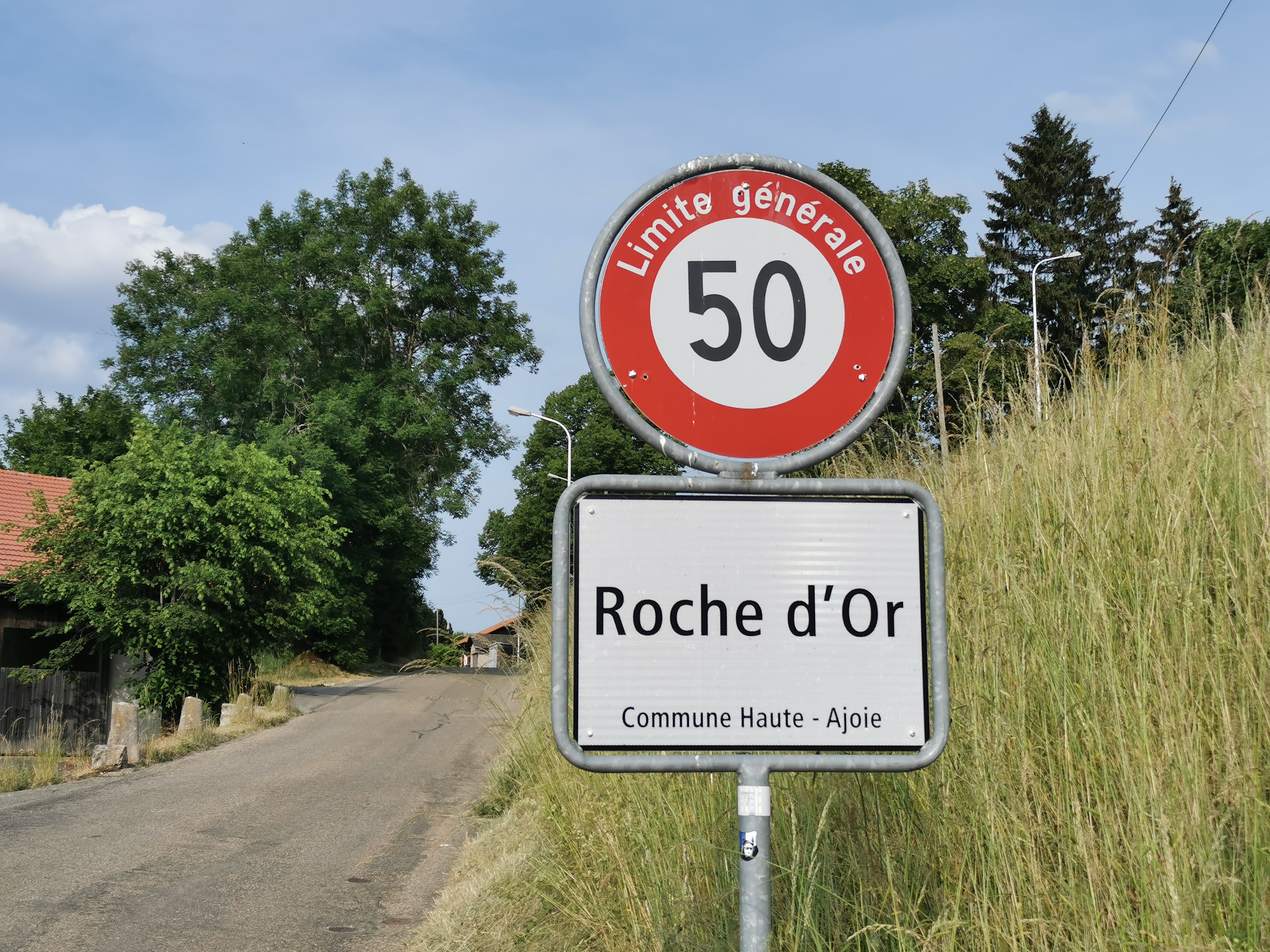 Gleich an der Grenze gab es früher ein Dorf namens Les Allemands. Im 1. Weltkrieg wurde der Name unbeliebt und man taufte das Dorf kurzerhand um in Les Alliés (die Alliierten). Im 2. Weltkrieg, unter deutscher Besatzung, hiess es nochmals kurz Les Allemands. Heute macht es einen friedlichen und verschlafenen Eindruck. Leider lud kein Restaurant zum Verweilen ein, nach einer kurzen Rast vor der Kirche füllte ich meine Wasserflaschen und peilte wieder die Grenze an.