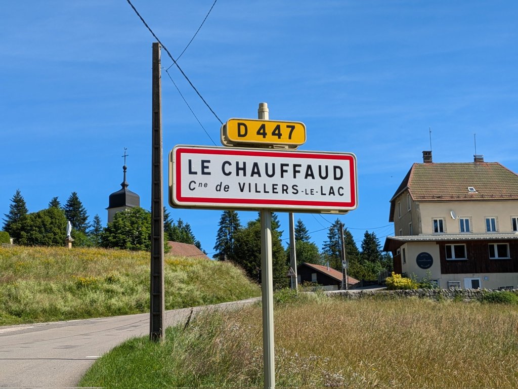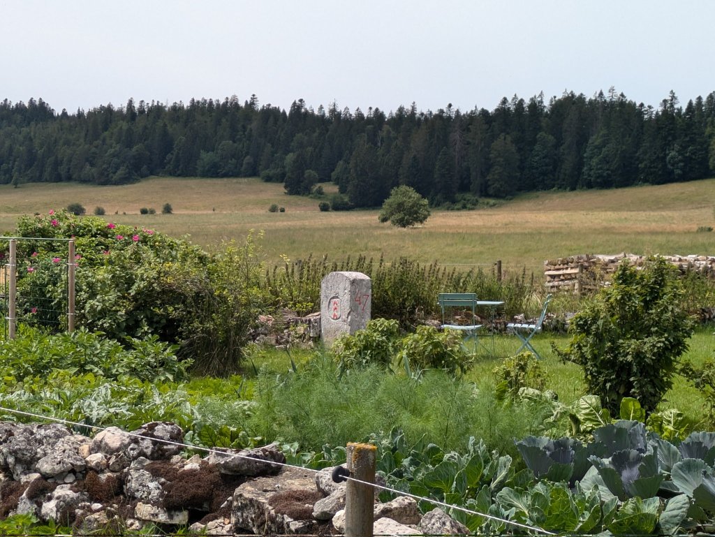 Die Etappe startete in Col-des-Roches, einem spannenden Weiler auf der Grenze (siehe Fotos in Etappe 8). Hier gibt es unterirdische Mühlen, die heute ein Museum sind. Zwischenzeitlich dienten sie auch als „Grenzschlachthaus“. Die Grenze führt westwärts zum nächsten Weiler Le Chauffaud, der durch die Grenze in einen grösseren französischen Teil und einen kleineren schweizerischen geteilt wird.