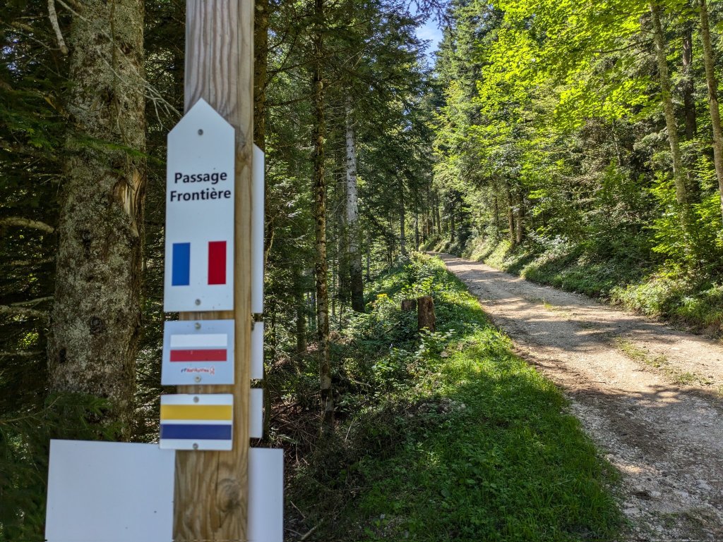Toller kleiner Grenzübergang, irgendwo mitten im Gjätt zwischen Le Chauffaud und Les Cérneux-Péquignot. Das Dorf stiess erst 1814 zum Kanton Neuenburg und damit zur Schweiz. Damit gehört dieser Grenzabschnitt zu den jüngsten der Schweiz.