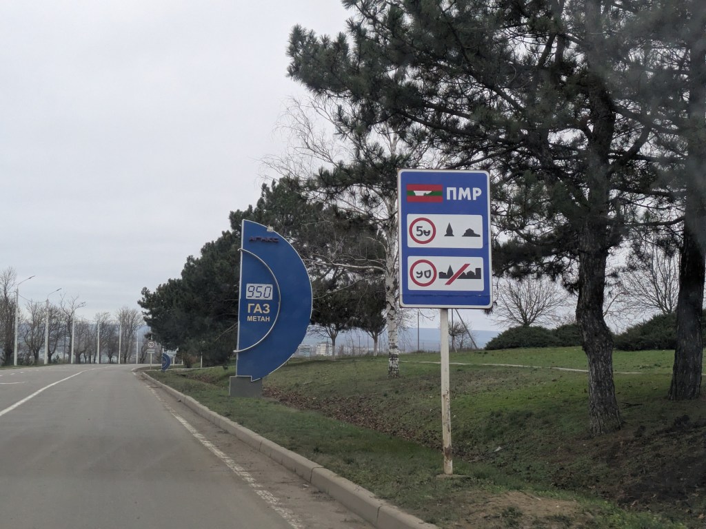 Mit einem YandexGo-Taxi fahren wir in der moldauischen Hauptstadt Chișinău los. Die Strassen sind gut, der Verkehr entspannt. Eine Stunde nach der Abfahrt erreichen wir die Grenzzone. Die feine EU-gesponsorte Landstrasse endet, macht einer postsowjetischen Schlaglochpiste Platz. Wir nähern uns den drei Checkpoints, etwas Nervosität macht sich nun doch breit. Ohne Kontrolle passieren wir den moldauischen Grenzposten, relativierend „Vamă internă“ (Binnenzoll) genannt, die letzte moldauische Tankstelle in der Pufferzone, dann plötzlich die Strassensperre: Barrikaden, ein Ausguck, Soldaten. Wie in einem Kriegsgebiet muss unser Taxi Schlangenlinien fahren, hält kurz an. Die Soldaten werfen uns einen Blick zu: auf ihren Uniformen sind russische Abzeichen. Dies ist der Checkpoint der „Миротворцы“ (Friedensstifter) der russischen Armee. Es fühlt sich nicht so gut an, an einem russischen Checkpoint anzuhalten. Doch wie in all den Jahren zuvor reagieren die Soldaten überhaupt nicht und wir fahren weiter.