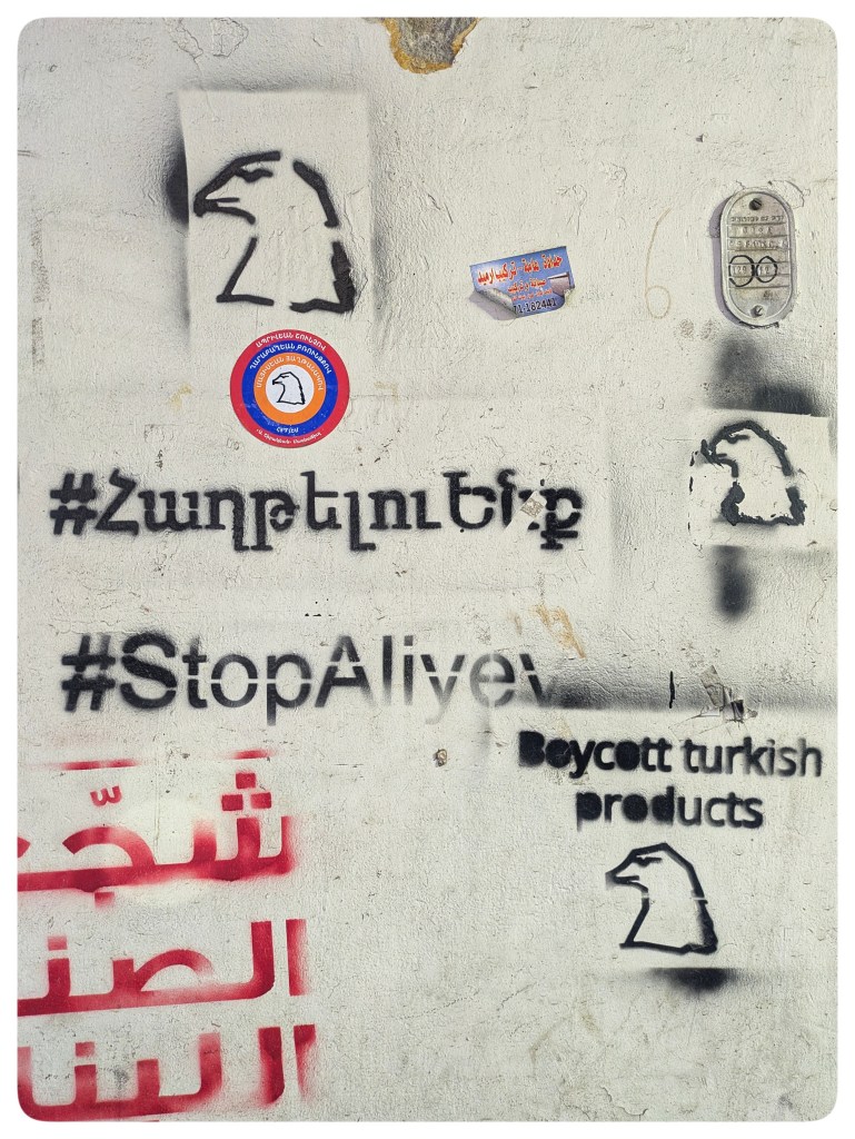 Beirut, Hamra. Schönes Garagentor im ansonsten wenig charmanten Geschäftsviertel.Beirut, Stadtzentrum. Der Palast des Premierministers (Grand Serail) ist von Checkpoints und Barrikaden umgeben.Beirut, Corniche. Dieser Lost Place ist nicht dem Bürgerkrieg zu verdanken, sondern dem wirtschaftlichen Niedergang.Bourj Hammoud. In der Vorstadt Beiruts leben fast nur Armenier, die vor 100 Jahren aus der Türkei vertrieben wurden. Die Stadt gilt als Shoppingzone. Armenische Restaurants und Bäckereien gibt es auch. Aber das hiesige armenische Essen ist sehr türkisch geprägt und gar nicht dasselbe wie in Armenien.Bourj Hammoud. Trotz aller Distanz der hiesigen Westarmenier zu den Ostarmenierns in der Republik Armenien ist die politische Solidarität gross.Thymian (Zaatar) ist das Nationalgewürz Libanons. Es beinhaltet auch gerösteten Sesam, Sumak und Salz und ist der wesentliche Bestandteil von Manouché: ein fantastisches Frühstück aus dem Holzofen, Pizza-ähnlich, dick mit Zaatar bestrichen und wird oft gerollt mit frischem Gemüse gegessen.Saida. Innenhof der Kirche Notre Dame de l’Annonciation.Saida. Der Markt ist lebendig und auf die Bedürfnisse der Einwohner ausgerichtet. Keine Spur von Overtourism.Saida. Kreuzfahrerburg, die touristische Hauptattraktion. Sogar an einem schönen Sonntag nur spärlich besucht.Chouf-Berge, Deir-el Qamar. Turm von einer der vielen Kirchen.