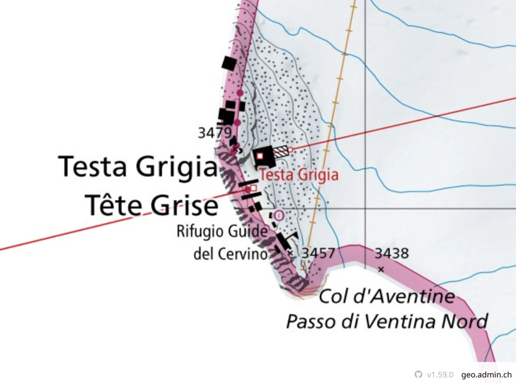 Stattdessen war die Testa Grigia jüngst Schauplatz eines schweizerisch-italienischen Grenzkonflikts. Die Grenzlinie ist hier als die Wasserscheide definiert. Lange verlief diese auf dem Theodulgletscher, einige Meter nordöstlich der Testa Grigia. Nun ist der Gletscher abgeschmolzen, die Wasserscheide hat sich auf den Felskopf verschoben. Plötzlich durchquerte die Staatsgrenze die meisten Gebäude darauf, die zuvor italienisch gewesen waren. Eines davon ist das Rifugio Guide del Cervino, die Schutzhütte der italienischen Matterhorn-Bergsteiger. Die italienischen Betreiber fanden das nicht so toll (ausser der Aussicht auf schweizerische Löhne). Es begannen jahrelange Verhandlungen mit der Schweiz. 2023 schliesslich wurde die Grenze nochmals verändert, per Staatsvertrag und Bundesratsbeschluss. Nun liegt das Rifugio wieder vollständig in Italien.